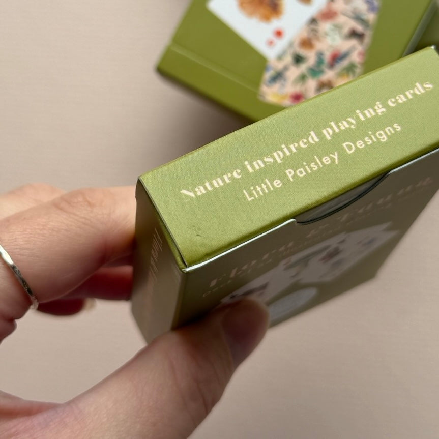 A beautiful pack of nature inspired playing cards. Each card features a different watercolour illustration of British flora and fauna - mushrooms, wildflowers, birds, bees, butterflies and moths. These whimsically illustrated playing cards would make an excellent gift for a nature lover, or a great addition to your games night collection.